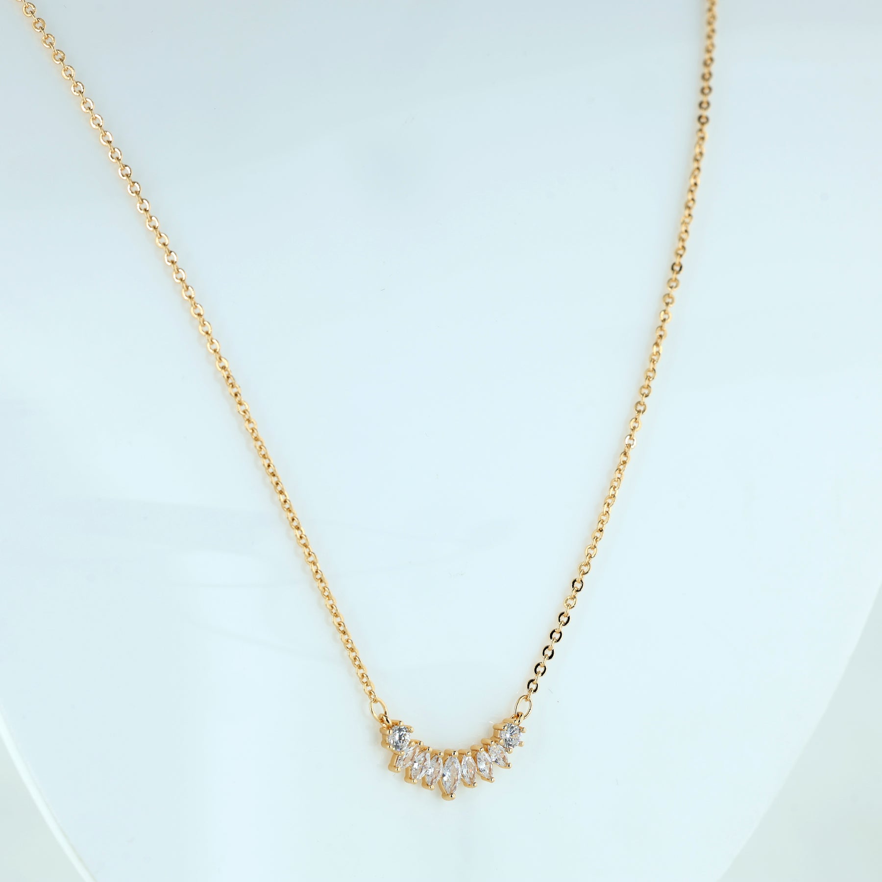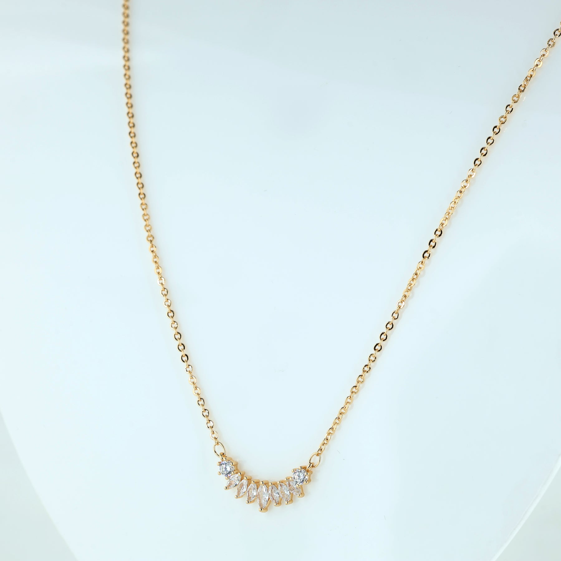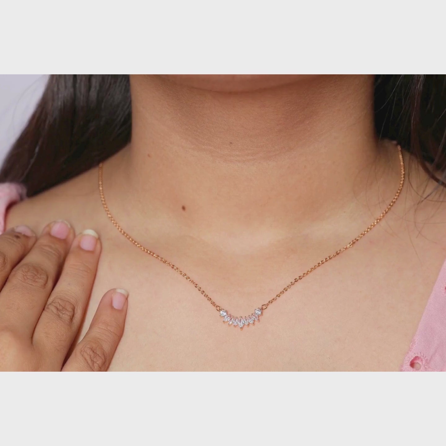 Dainty Rose Gold Crystal Curve Necklace