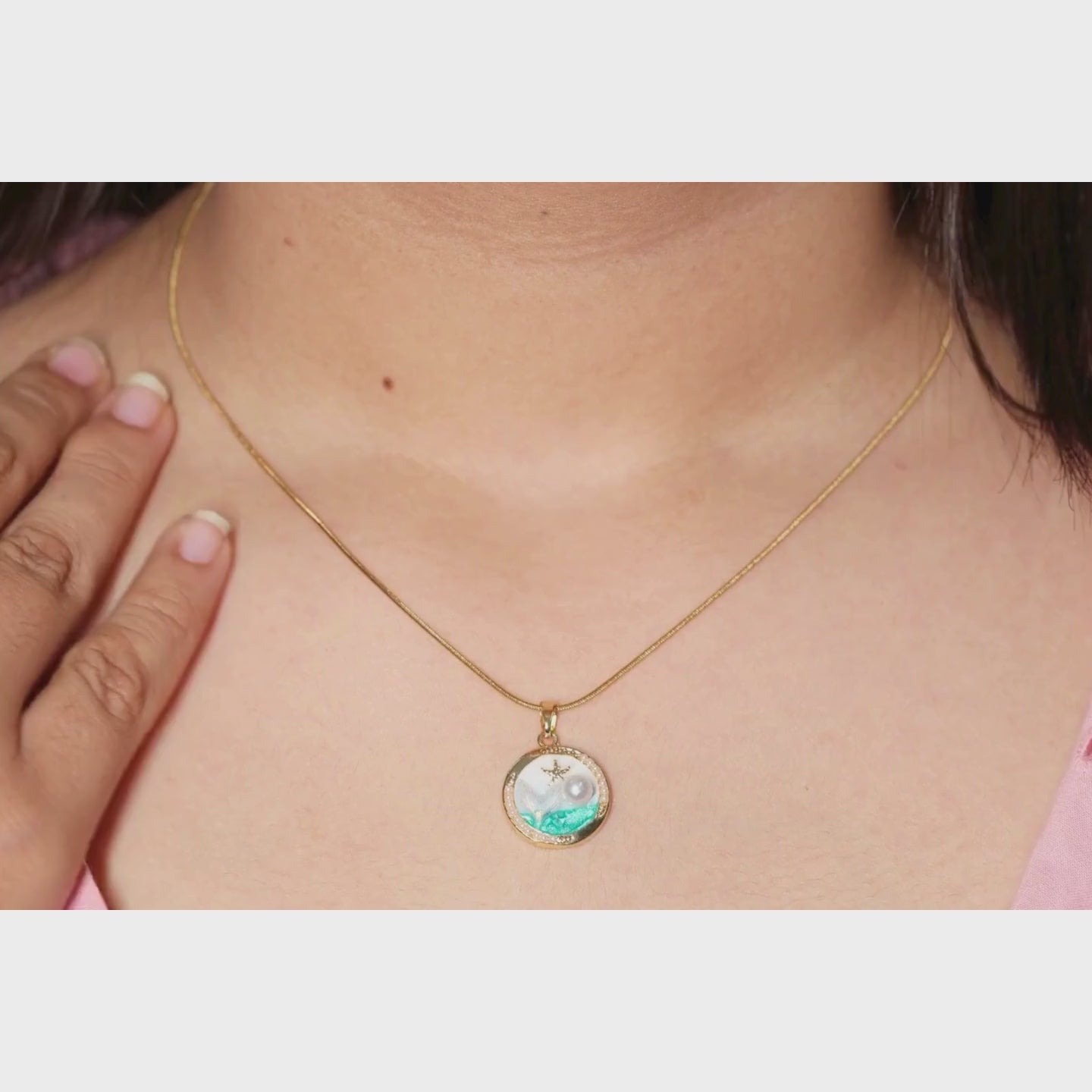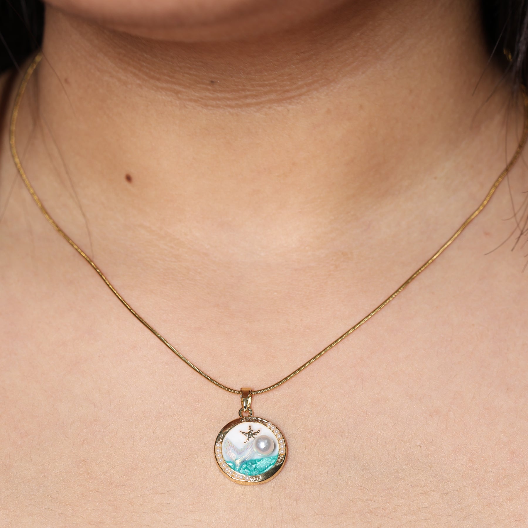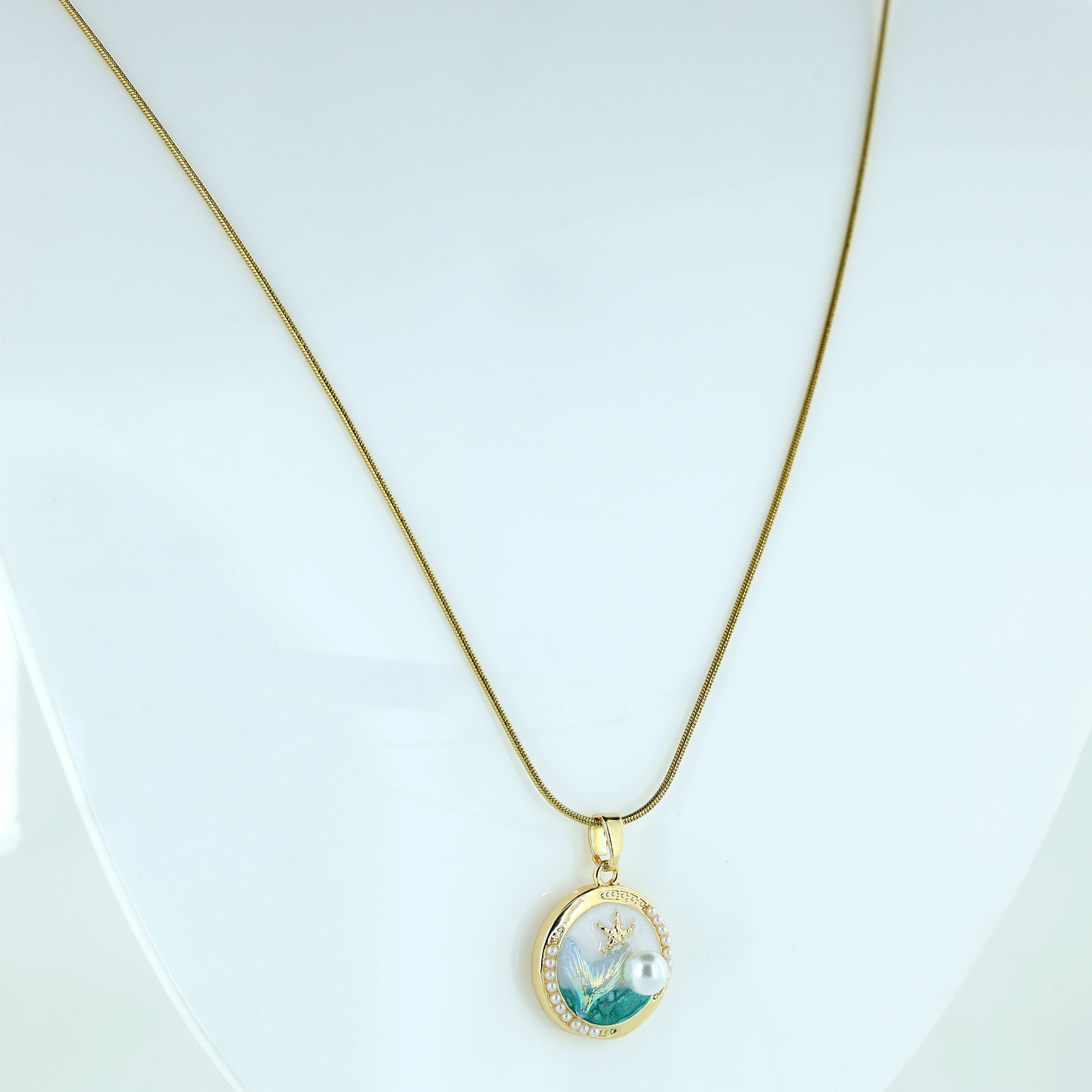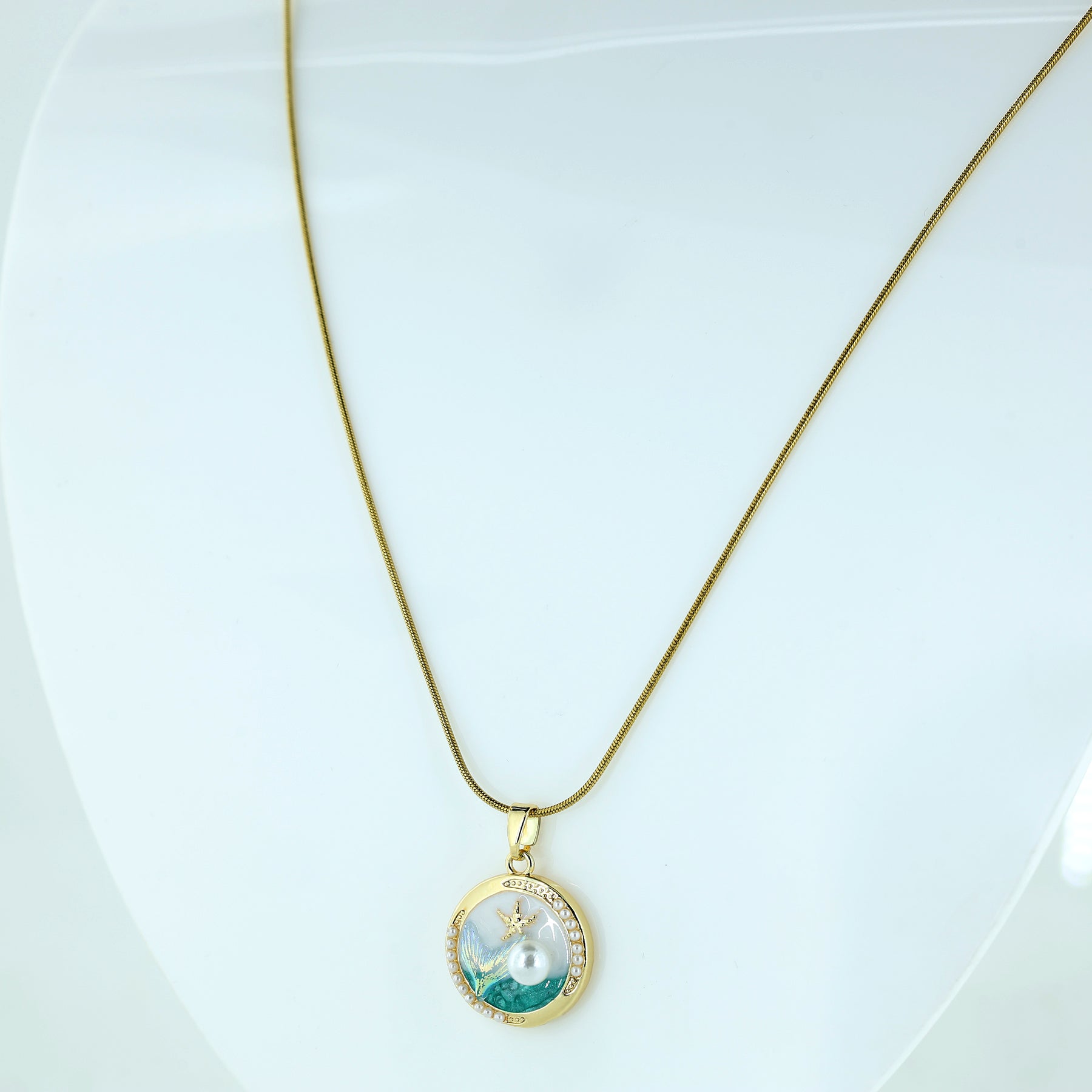 Ocean Pearl Round Pendant Necklace
