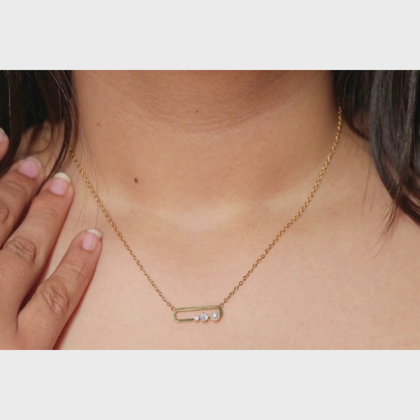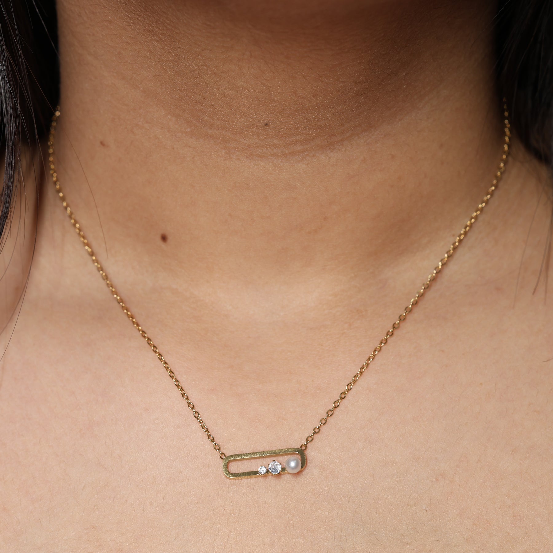Minimalist Gold Bar Pendant Necklace with Pearl & Crystal Accent