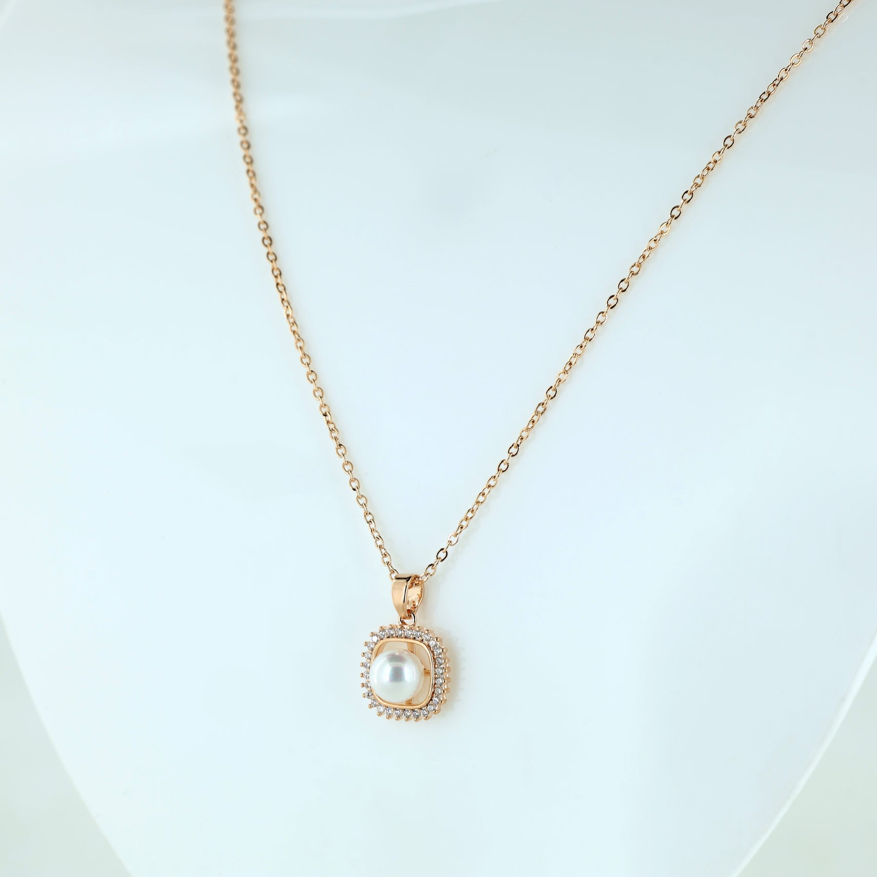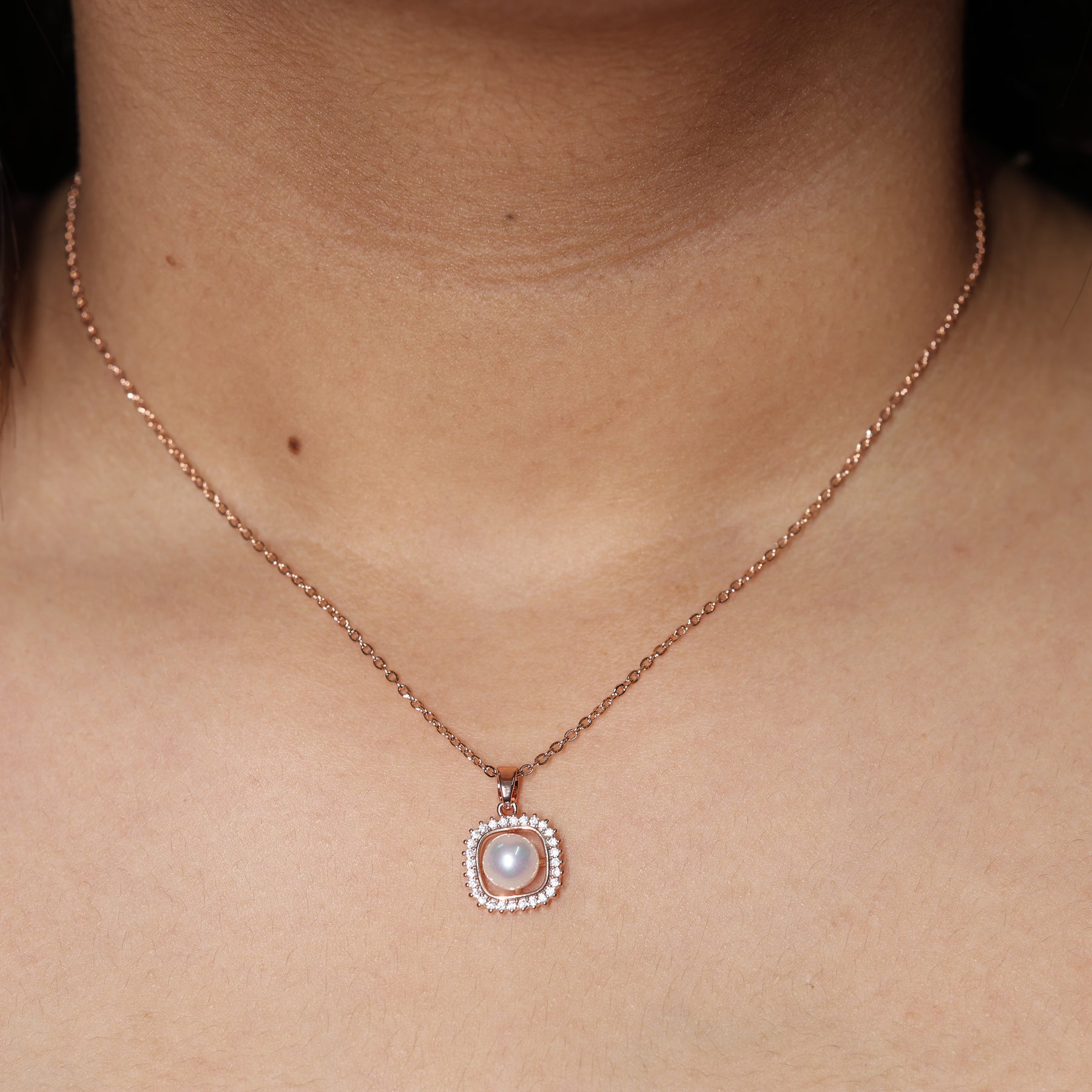 Add effortless sophistication to your look with this rose gold plated pearl pendant necklace, designed for women who appreciate classic beauty with contemporary style. Featuring a luminous pearl centerpiece surrounded by sparkling diamond accents, this necklace delivers a refined and luxurious appeal perfect for every occasion.